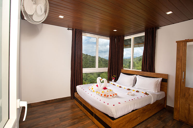 This property is situated on top of a hill and the weather there is excellent. The place has the charm of peace and serenity too. Nights are cool needing no AC or fan. We have 7 independent villas and another 7 suits at this place. From all the rooms, the beautiful outside greenery and hills are visible.